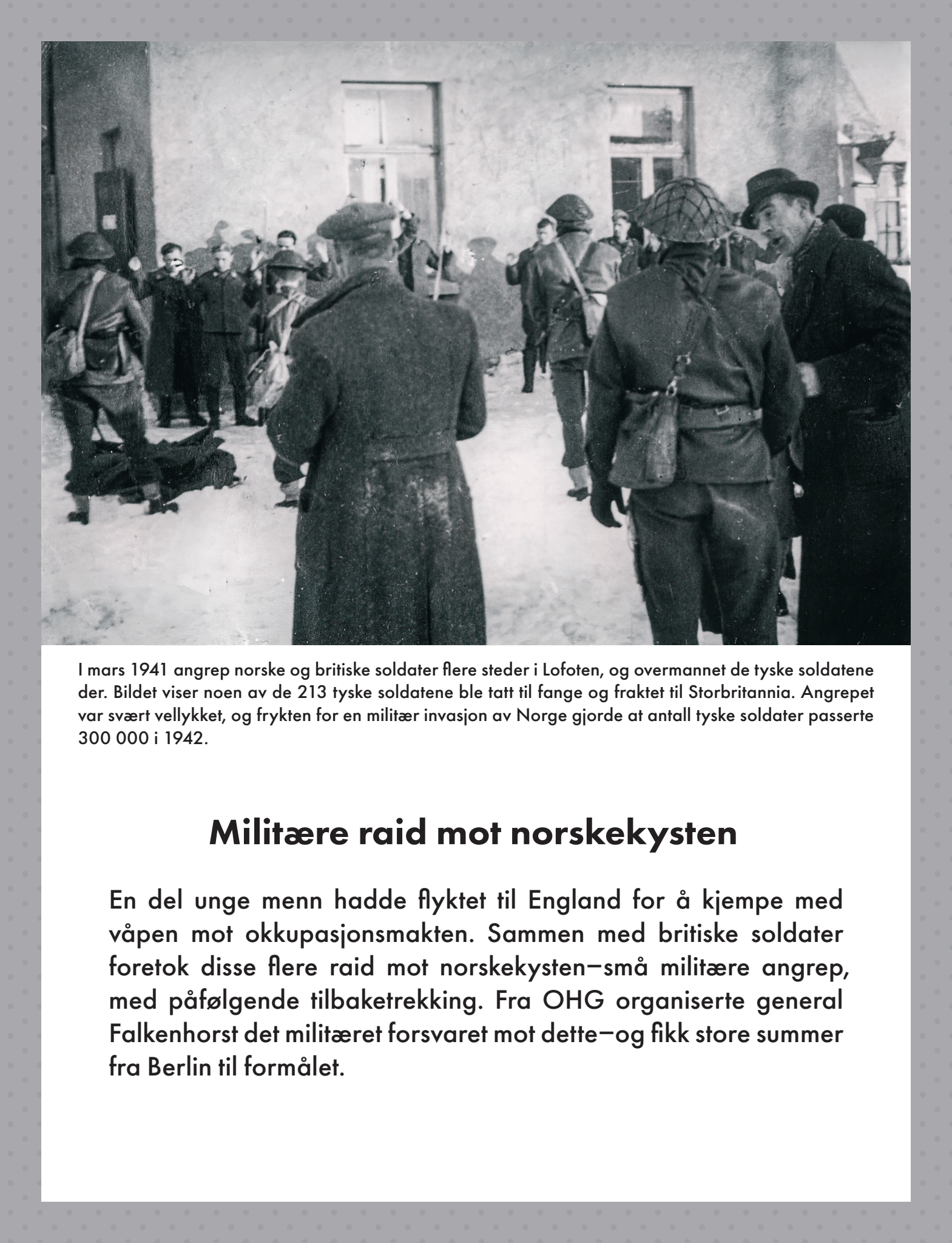 Britene gjorde hva de kunne for å holde den tyske frykten levende ved å legge ut falske spor som den tyske etterretningstjenesten fanget opp, og ved trene opp norske mannskaper og utstyre dem med våpen. Sammen med britiske kommandosoldater foretok disse mannskapene raid mot norskekysten. Jo flere våpenleveranser som kom, jo sikrere ble også mange i den norske motstandsbevegelsen på at den frigjørende engelske invasjonen snart ville komme.