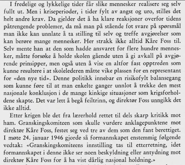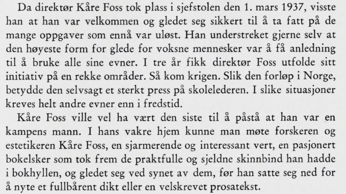 Omtale om Kåre Foss i boken Oslo Handelsgymnasium 1875-1975: